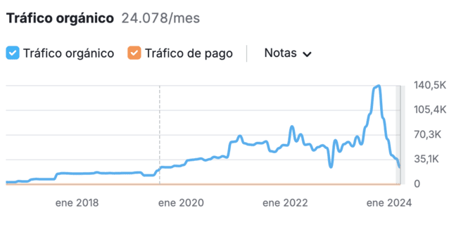 Gráfico de SEMRush para todo el tiempo del proyecto, hasta enero de 2024
